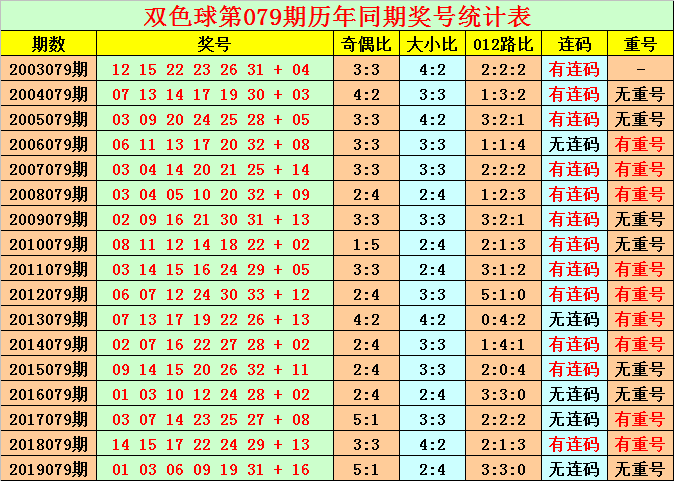 双色球第2020079期开奖日期:2020年8月20日,历史上第079期已开出了17次奖号,历年同期号码分别为: