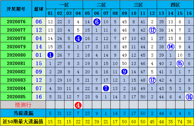 蓝球推荐(5码):01、04、07、08、13