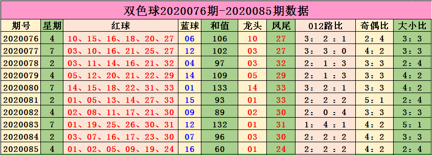 双色球 2020086期