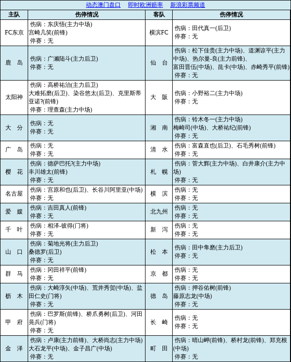 足彩伤停:仙台七夕6人缺阵 柏太阳神防线受损