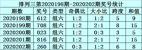 组选类型判断:最近5期排列三开出3次组六号码,本期重点关注组六号码出现。