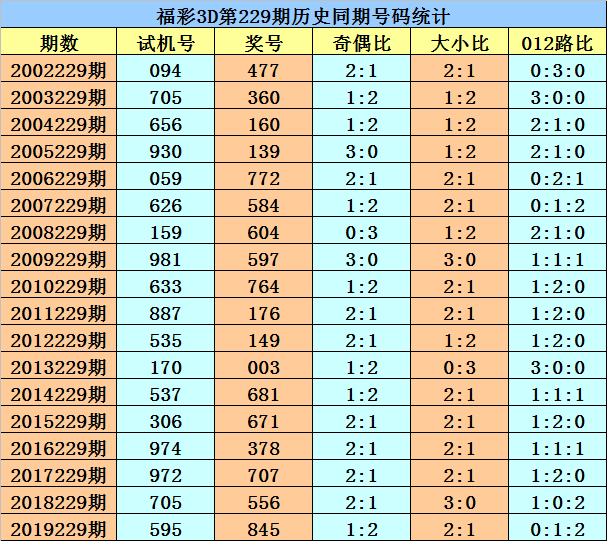 福彩3D第2020229期开奖日期:2020年10月8日,历史上第229期已开出了18次奖号,历年同期号码分别为:764、176、149、003、681、671、378、707、556、845。