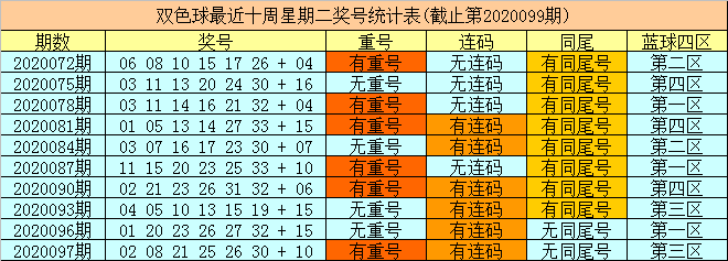 财姐双色球第2020100期星期二奖号分析: