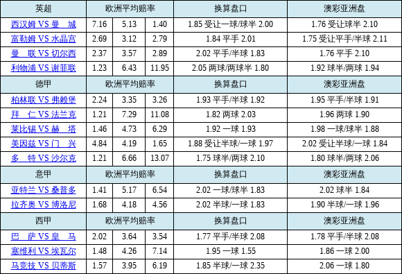 胜负彩20049期欧亚赔率对照:曼联盘口存差异