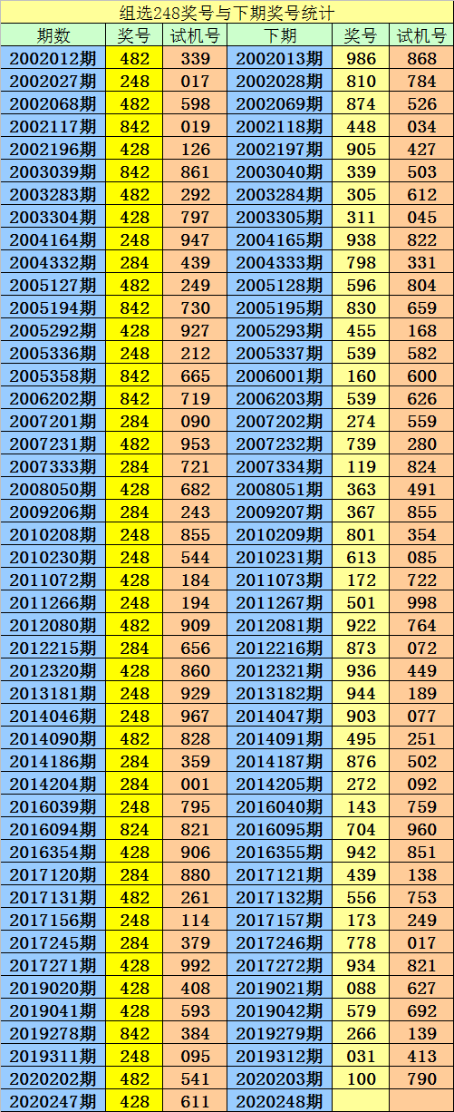 第2020247期3D奖号组选为:248,历史上该号码组选出现47次,下期号码分别为:986、810、874、448、905、339、305、311、938、798、596、830、455、539、160、539、274、739、119、363、367、801、613、172、501、922、873、936、944、903、495、876、272、143、704、942、439、556、173、778、934、088、579、266、031、100。