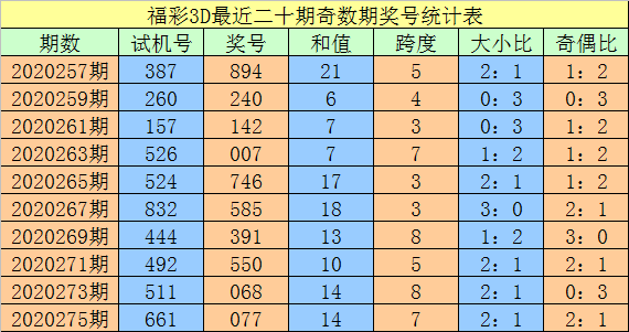 和值分析:最近5期奖号和值分布在14-18之间,波动了5个点位,波动范围较小,上期开出和值16,上升了2个点位,本期预计和值上升,关注和值22。