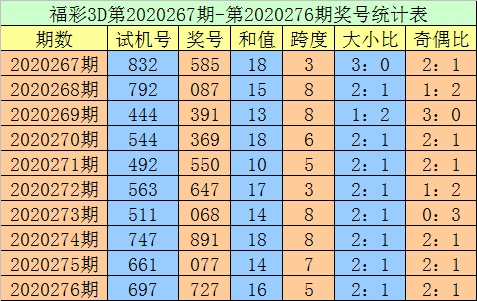 福利彩票3D第2020276期开出奖号727,试机号为697。奖号类型:组三,大小形态:大小大,奇偶形态:奇偶奇。