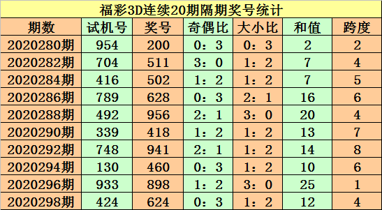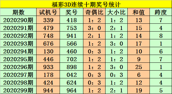 福彩3D第2020299期奖号:964,试机号:944。组六、大大小、奇偶偶。