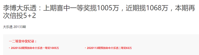 李博喜中大乐透一等豪揽1005万!还有两大专家