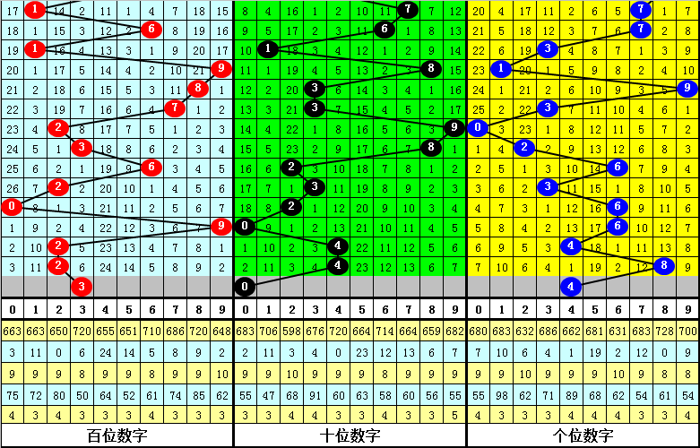 其中,组三出现3次,组六出现16次,单选0-9分别开出: