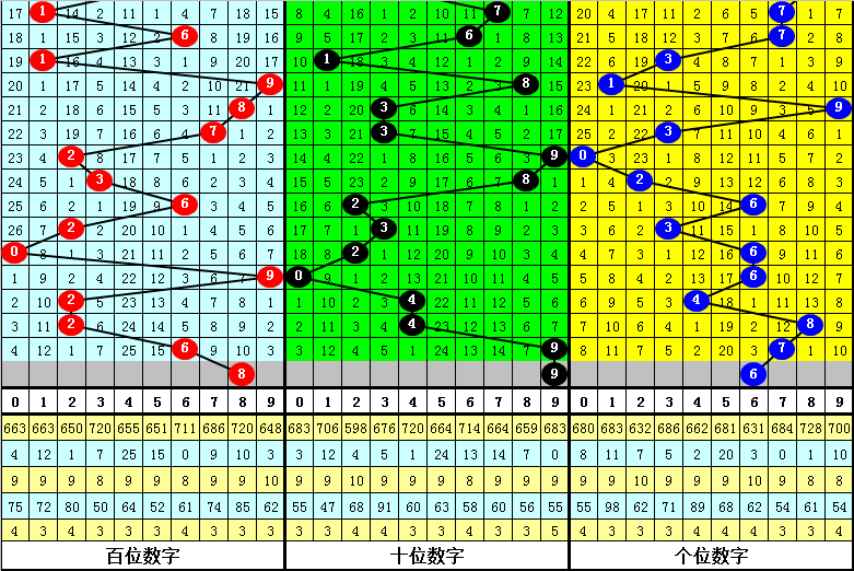 组选分析:在0-9的组选分布图中,最近10期0-2区段开出10个号码,3-6区段开出13个号码,7-9区段开出7个号码,上期0-2区段没有出号,本期看好中后部号码热出,防0-2区段走冷轮空。