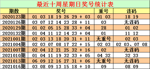 斜连码:本周日有3个红球:07 14 14,处于斜连码轨迹上,上周日开出斜连码13斜连码奖号在最近十周日奖号中走势比较高,有6期奖号包含斜连码,本周星期日注意斜连码红球走冷,放弃斜连码组合。