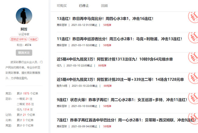 昨日,13连红的专家阿哲并没有选择修生养息,而是主动出击欧罗巴,做了一单3串1提供给大家借鉴。结果阿贾克斯、比利亚雷亚尔和罗马都顺利赢球,3串1再次跑出,连红场次也达到了可怖的16场!阿哲凭借稳定的发挥,已经创下了个人的连红新纪录。面对周五小联赛他会如何选胆呢,大家关注起来,别错过最新方案!