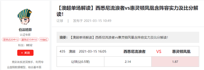 西悉尼流浪者上轮赢下西部联,终结了连败颓势,西悉尼赛季初尚能稳扎稳打,注重防守,但是随着赛季深入,球队的防线就又开始出现了问题,3场不胜的比赛中,全部丢足2球以上。惠灵顿凤凰赛季初表现不佳,但是近期攻防两端效能明显提升,两场零封大胜,士气提振。澳超联赛因为受到疫情影响,前几年投入较大的球队折损严重,西悉尼就是其中之一,队内引进的强力球员全部离队,实力平庸。惠灵顿坚持培养自己的球员,配合默契之后,能够有不错的团队反应。惠灵顿改打反击后,成效卓著,西悉尼进攻尚可,但是防线孱弱,被打反击比较难受,平半升盘半球,受热所致,两队实力差距不大,综合分析看好状态更好的惠灵顿力保不败。两队进攻效率不错,被零封率较低,预计双方球队进球格局。