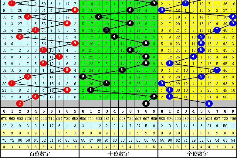 前7次第三位号码开出奇数、小号时奖号分别为:061、323、791、683、193、581、811,其中奇偶总比例为14:7,有3期奇偶比与上期奇偶比相同;号码大小总比例为9:12,有3期奖号大小比与上期大小比相同;