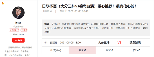 机构指数给出的是0,随着时间的推移,指数逐步向大分三神这边靠拢下调的,后市的指数,应该会继续围绕0浮动调整的!两队从历史交锋来看,德岛漩涡处于一定的强势,但是近期的状态发挥,大分三神比德岛漩涡状态更为好一些的。大分三神上场比赛联赛主场1-0取胜清水鼓动,终止了连败的局面,对其球队士气无疑起到了很大的鼓舞,所以不妨支持一下大分三神不败拿分。