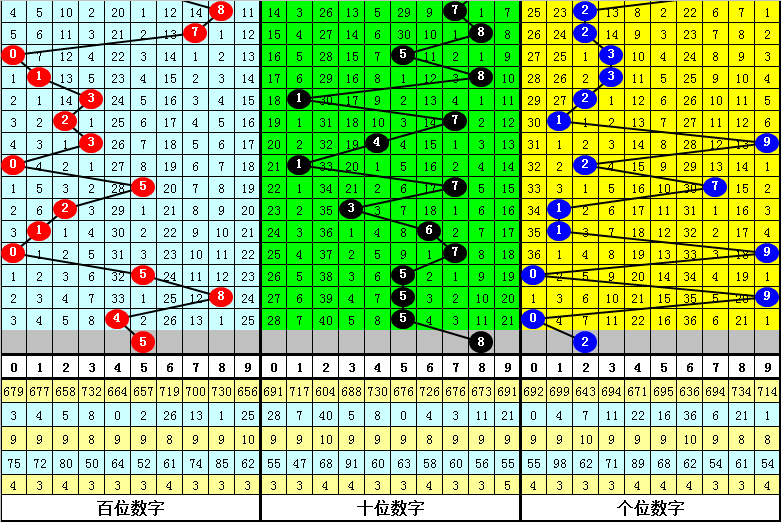 从以上统计可以看出,在组选分布图中,号码0开出11次,1开出12次,2开出11次,3开出10次,4开出12次,5开出12次,6开出7次,7开出11次,8开出18次,9开出10次,号码奇偶比为55:59,偶号走势相对活跃,本期预计偶数继续热出,奇偶比为1:2;号码大小比为:58:56,大小号码基本相当,本期看好大号转热,大小比参考2:1。