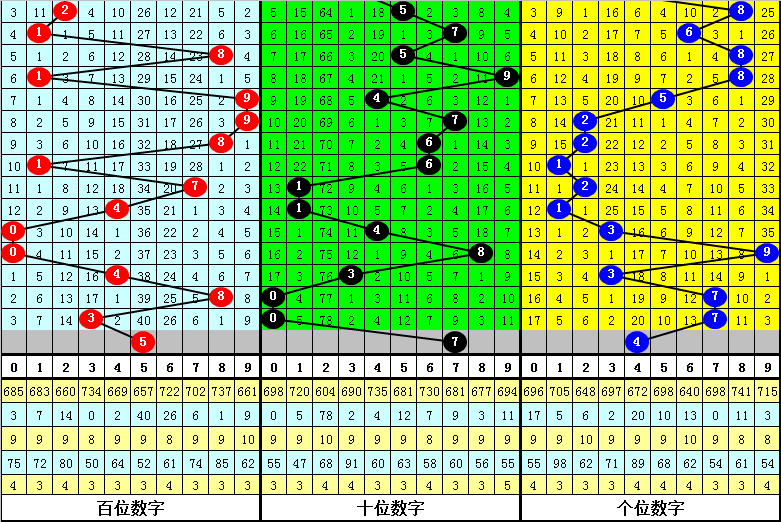 号码频次:在第159期历史同期开奖中,号码0-9出现频次分别为:号码8出现3个,号码3、4出现4个,号码2出现5个,号码5、6、9出现6个,号码7出现7个,号码0、1出现8个,今年同期绝杀一码9,独胆看好4。