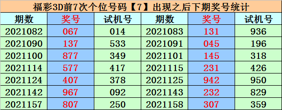 个位分析:上期个位开出奖号7,个位历史上号码7已开出698次,最近100期个位号码开出7次,上期号码为重号。