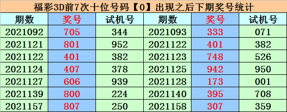 在十位开奖中,号码0前7次出现之后,下期奖号分别为:3、0、4、4、7、9、0,其中奖号奇偶比为3:4,大小比为2:5,012路比为4:3:0。
