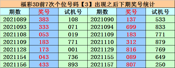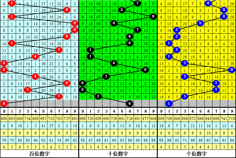 个位分析:上期个位开出奖号3,个位历史上号码3已开出698次,最近100期个位号码开出3次,上期号码遗漏2期出现。