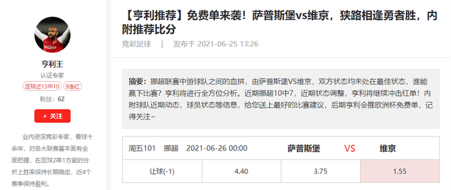 本场比赛机构初始开出了平手指数,现在已经升到了主队萨普斯堡让平半。一开始机构对于萨普斯堡的支持力度反而明显不及前几次双方交手的时候,显然对其本场取胜前景持怀疑态度。后续虽有上调赔付动作,但也有可能是刻意诱导。再结合双方近些年的交战记录来看,个人觉得本场维京不败抢分前景可期。