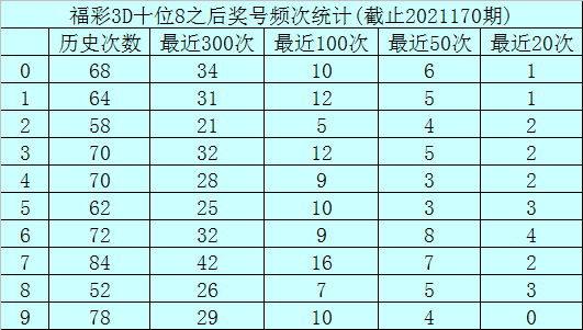 十位杀号:上期十位奖号为8,历史上十位奖号8共出现679期,前100次十位开出奖号8时,其下期0-9奖号频次分别为:奖号7开出16次,1、3开出12次,0、5、9开出10次,4、6开出9次,8开出7次,2开出5次。