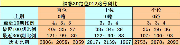 百位推荐:近10期出现4个0路号、3个1路号、3个2路号,0路号火爆。本期注意0路号,关注号码3、6、9。
