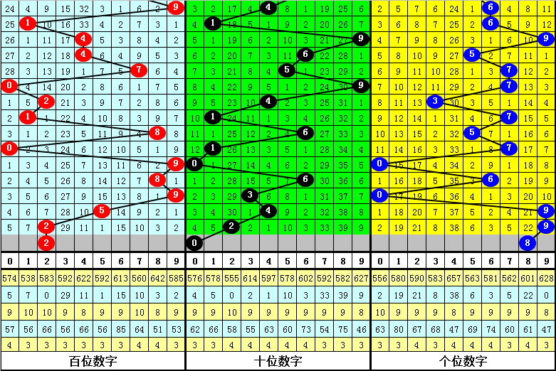 十位:上期为2,近10期012路比为5:4:1,其中2路号遗漏9期出现,本期排除2路号,注意0路号出现,关注0。