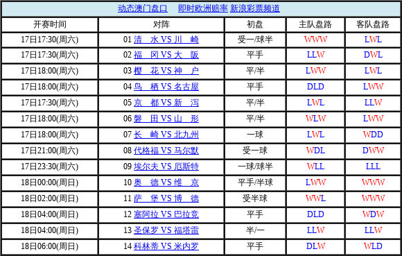 相同盘口:川崎让一球球半盘不稳 博德半球盘全赢