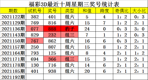 福彩3D 2021192期