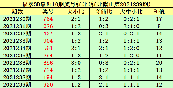 福彩3D 2021240期