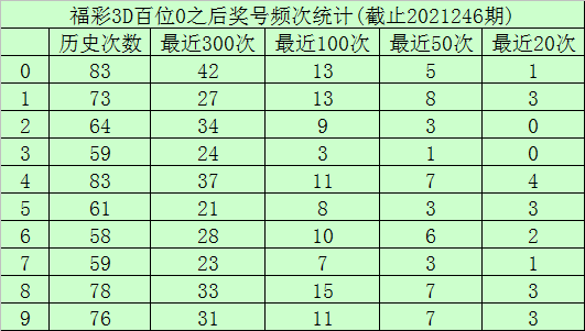 百位杀号:上期百位开出号码0,历史上百位号码0已开出695次了,最近100次百位号码0出现之后,其下期各号码频次分别为:号码8出现15次,0、1出现13次,4、9出现11次,6出现10次,2出现9次,5出现8次,7出现7次,3出现3次。