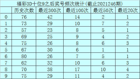 开奖回顾:福彩3D第2021246期奖号为091,试机号为221。奖号类型开出:组六、小大小、偶奇奇,和值为10。