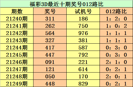 开奖回顾:第2021249期3D奖号为448,试机号为829。形态:组三,奇偶比0:3,大小比1:2,012路比为0:2:1。