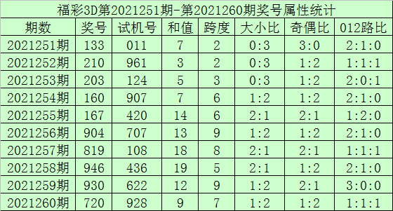 开奖回顾:福彩3D第2021260期开奖号:720,试机号:928。其中奖号和值:9,奇偶比1:2,大小比1:2。
