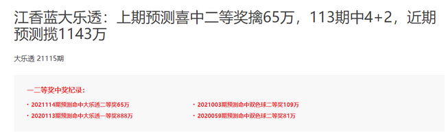 [江香蓝刚中4+2又揽二等65万!]