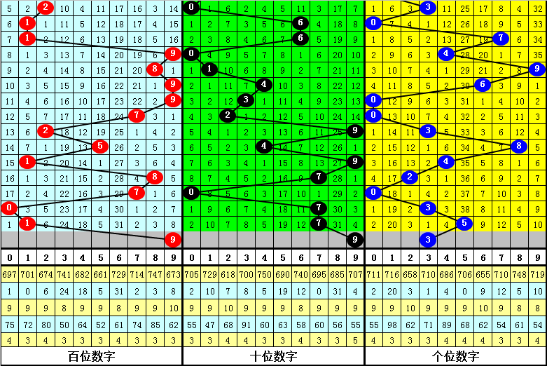 在历史同期号码中,组选0-9号码出现次数为:2、6出现3次,号码0、1、5、8出现5次,号码7、9出现7次,号码3出现8次,号码4出现9次,本期看好两码9、9出现。
