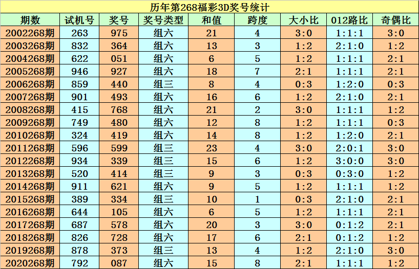在历年同期开奖中,组三出现6次,组六开出13次,组三轮空1年,今年同期防组三。