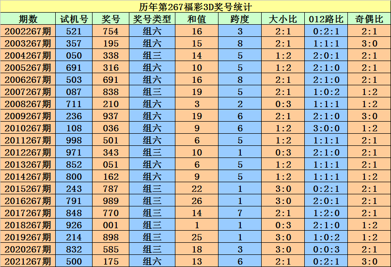 开奖回顾:福彩3D第2021267期奖号为:175,试机号为500。