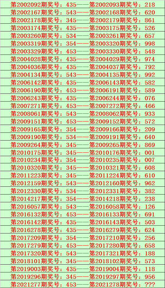 福彩3D第2021278期开奖日期:2021年10月19日,历史上第278期已开出了19次奖号,历年同期号码分别为:321、366、880、149、793、615、786、367、127、087、021、134、209、845、435、902、563、842、021。