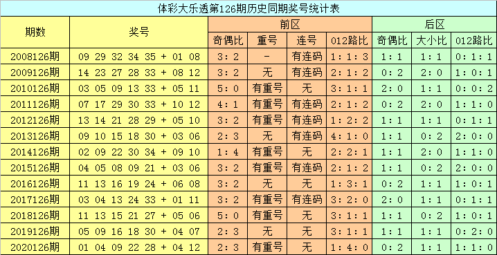 体彩大乐透第2021126期历史同期奖号分析: