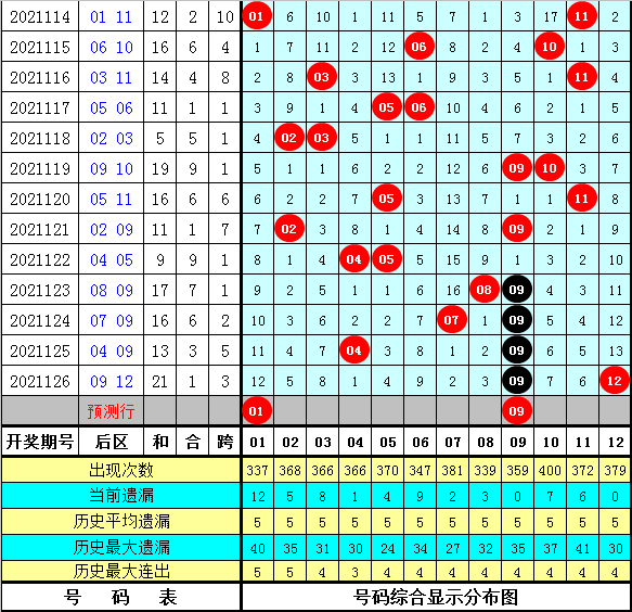 四、后区分析:在127期历史同期开奖中,后区全大组合开出4次,全小组合开出0次,一大一小组合开出9次;后区全奇组合出现2次,全偶组合出现3次,一奇一偶组合出现8次。本期后区注意全奇组合出现,参考两码01、09。