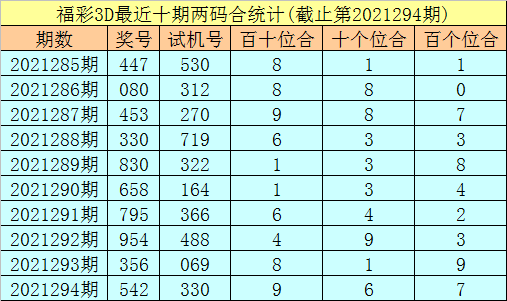 福彩3D第2021295期两位合分析: