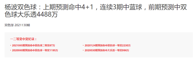 此外,在上期预测中,目前以总中奖金额4488万排名第一的