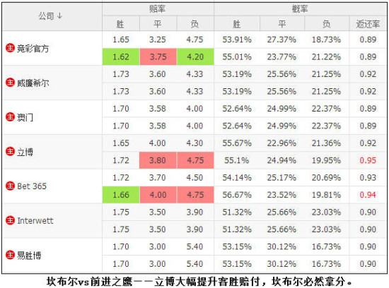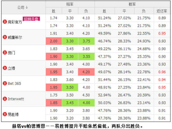 [微博]选入,荷甲坎布尔对阵前进之鹰,立博和bet365的变盘基本能够确保坎布尔拿分;德甲赫塔与帕德博恩交手,易胜博尽管调高平赔,但依然处于主流最低,本场两队将很大可能分出胜负。