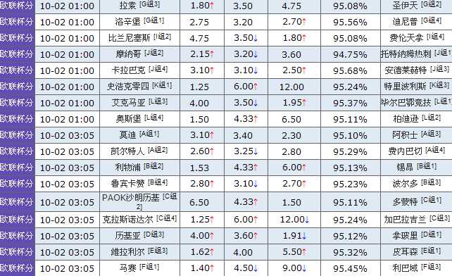 克拉斯诺达尔对阵盖贝莱,阿塞拜疆球队盖贝莱鲜有参加欧战机会,1.25的超低胜赔主胜在望;华沙军团对阵那不勒斯,那不勒斯的名气和实力占据较大优势,1.91的负赔明显高企,谨慎走客胜;比利亚雷亚尔对阵比尔森,比利亚雷亚尔联赛强劲但欧罗巴首轮输给弱旅维也纳快速,比尔森首轮战胜明斯克迪纳摩,谨慎看主胜;马赛对阵利贝雷茨,1.40的偏低胜赔马赛取胜无悬念。