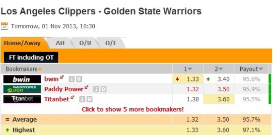 盘赔方面,快船主胜均赔为1.32,勇士客胜均赔为3.50,快船在首战意外失利的情况下,战意反弹成为各公司看好快船结束连败的重要因素。后市方面bwin同样继续调低主胜赔率,快船理应借此良机赢球反弹。让分方面主队让出6.5分,此战恐怕要到最后才分出胜负,建议让分走客胜。大小分方面开出203.5分,两队皆是进攻型球队,过去十次交手8次打出大分,本场暂走大分为宜。