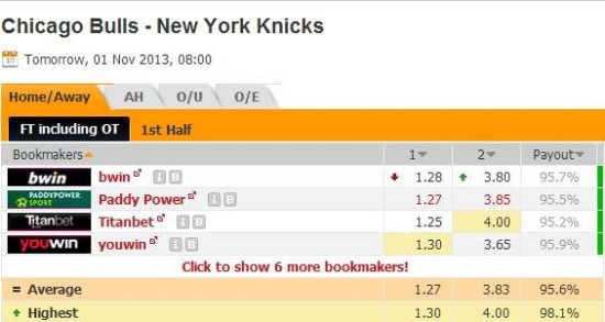 盘赔方面,本场比赛理应为一场强强对话,但公牛主胜均赔仅为1.27,尼克斯客胜均赔则为3.83,主队止住连败的题材得到充分防范。后市方面bwin继续降低主队胜赔,公牛胜出希望很大。让分方面主队让出6.5分,以公牛输给卫冕冠军后的赢球心理,再加上尼克斯战力受挫因素,建议走主队让分胜出。大小分方面开出189.5分,双方攻防节奏不至过快,而客队进攻同样不宜高看,建议走小分。