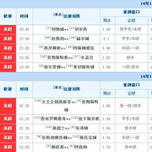 北京时间11月8日晚,英超[微博]联赛第11轮将打响。本轮最焦点的赛事莫过于利物浦[微博]主场和切尔西[微博]的比赛,排名榜首的蓝军客场让出平/半盘中水,还是获得了足够肯定。曼城[微博]和近况上佳的南安普顿均让对手一球/球半盘,全取三分机会很大。